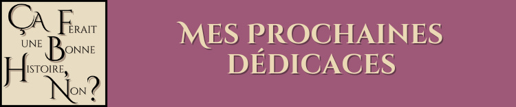 Prochaines dédicaces (dont un salon qui m’a choisie comme invitée d’honneur, et ça, j’avoue que ça fait plaisir !)